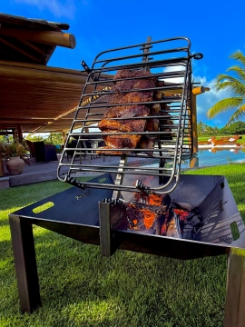 É uma parrilla projetada para trabalhar com brasa e lenha, construída em aço carbono espesso e desenvolvida para uso intenso, grandes volumes de carne e experiências completas de churrasco ao ar livre. Cada detalhe prioriza estabilidade térmica, segurança no uso e conforto para o assador.